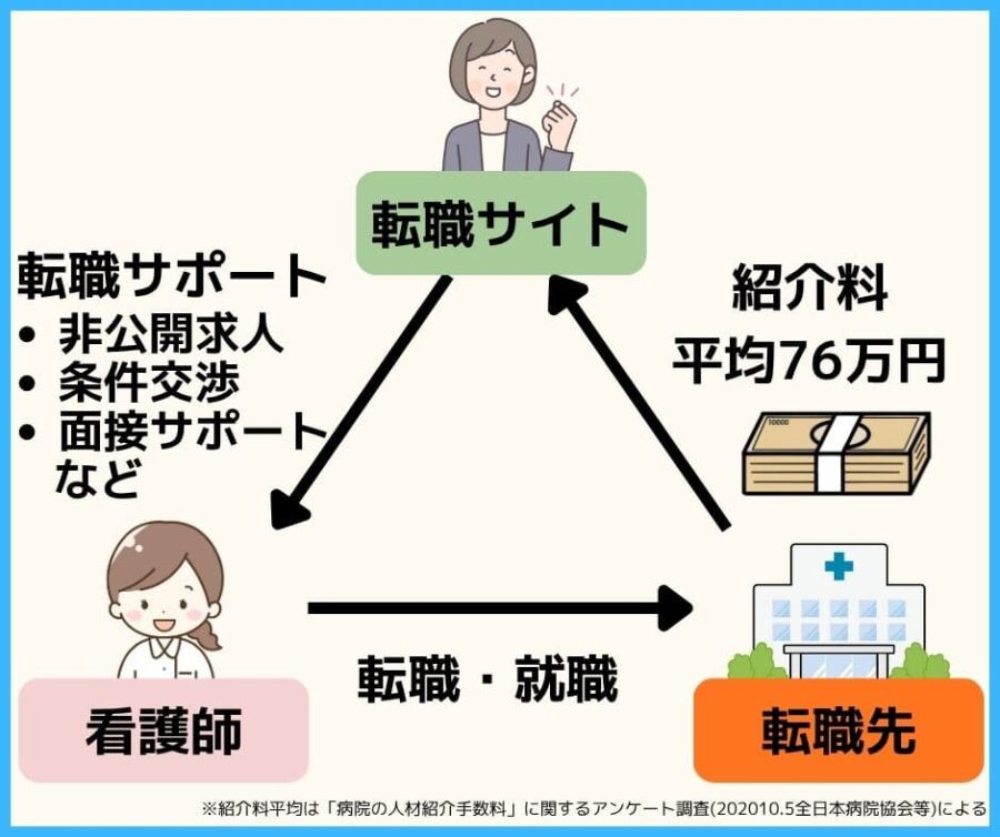看護師転職サイトは、あなたが病院に転職することで支払われる「病院からの報酬」で運営しているのです。