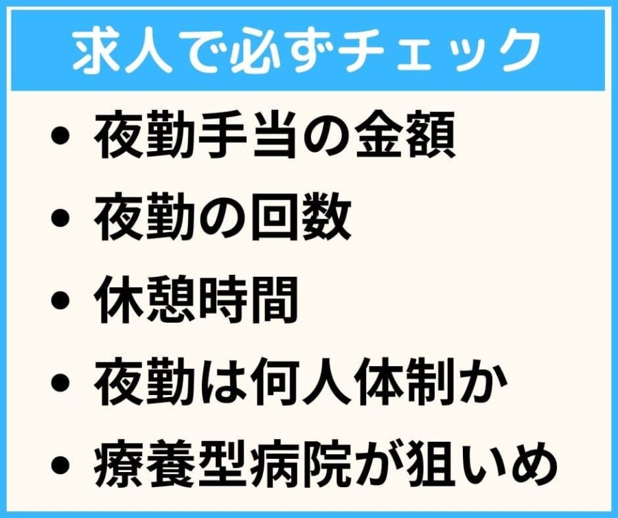 夜勤専従は、事前に勤務する病院の夜勤状況を確認しておくことが重要です。