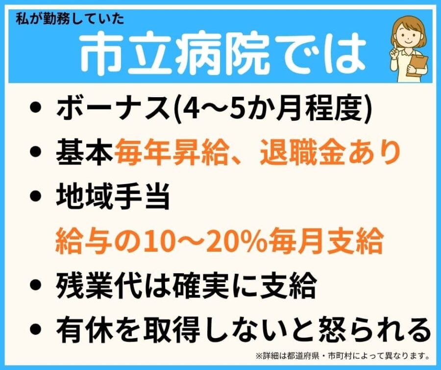 私は公営病院(市立病院)に勤めていました。公営病院には良い点がたくさんあります!
