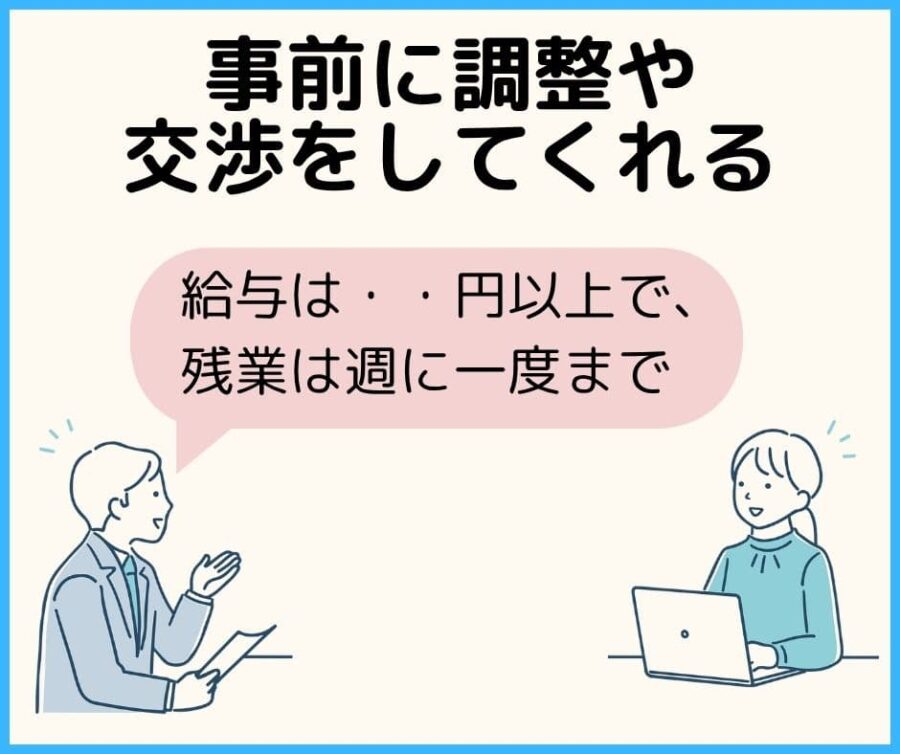 「もっと給料を上げたい」「夜勤を減らしたい」など、言いにくい条件交渉を代わりにやってくれます。
