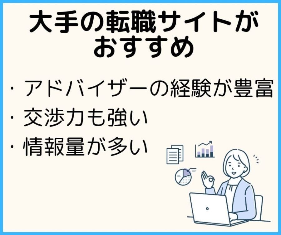 大手の転職サイトは、担当者の教育もしっかりとしていて、経験も豊富です。