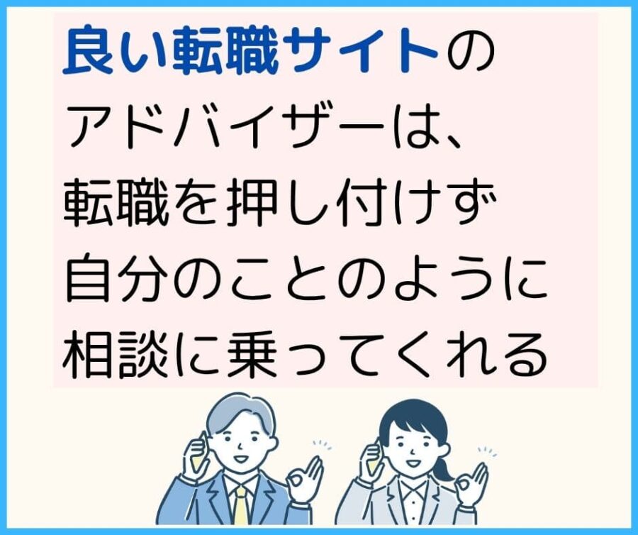 また、希望に沿った転職先を提案してくれるだけでなく、転職が必要ないときは「無理に転職する必要ないです」と言ってくれる。こういったことも重要です。